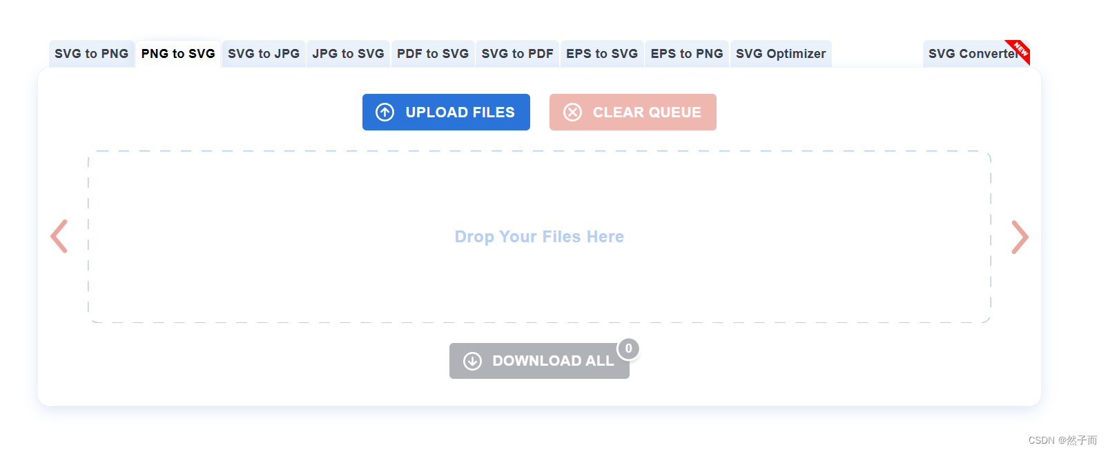 新手在写论文的时候,可能不太了解要使用矢量图,很多时候会导出JPEG或PNG格式,如果使用word写论文再导出PDF格式的时候,很容易把图片压缩的很模糊。这里推荐一个免费的好用的网站,可以很好的把PNG格式转成SVG格式:
