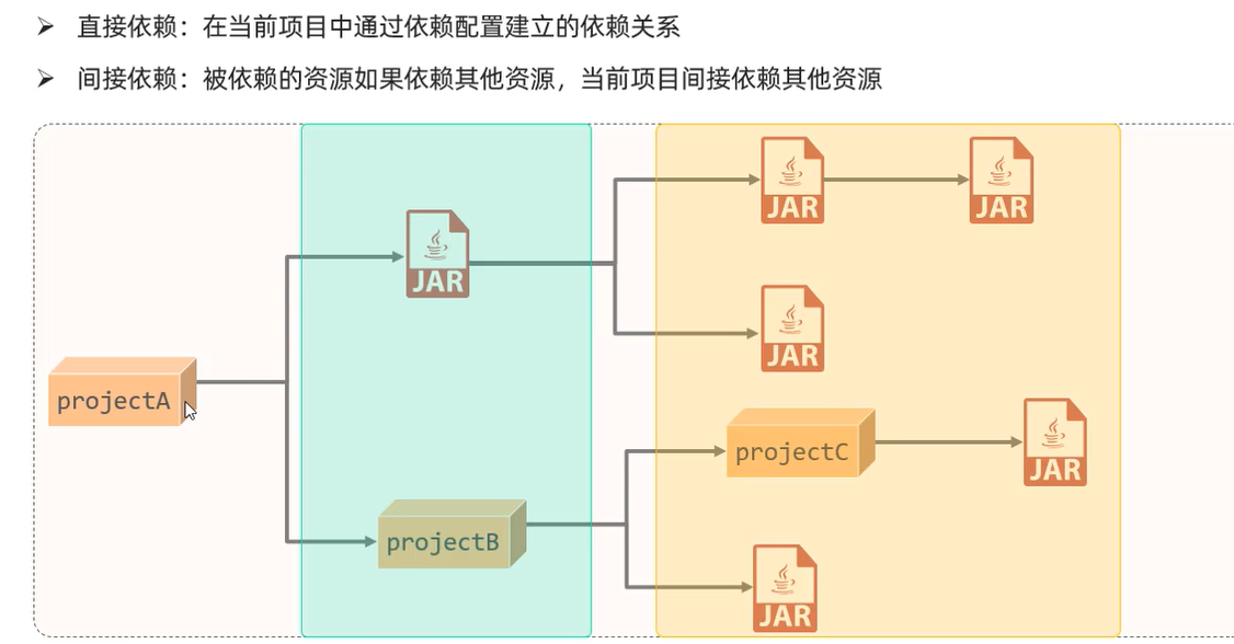 3. 依赖管理 依赖:就指项目运行所需要的jar包,一个项目可以引入多个依赖