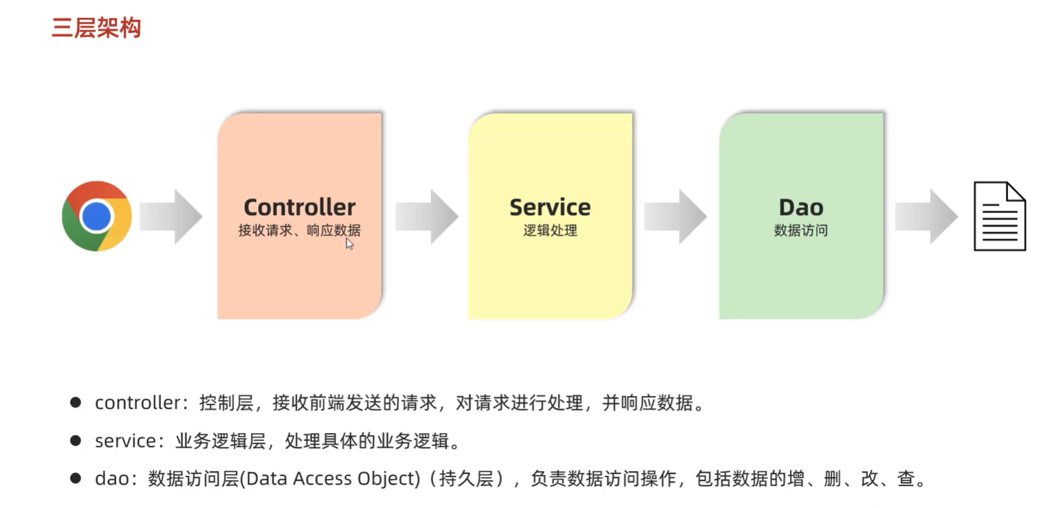 2. Bean管理 A. 获取Bean 默认情况下,SpringBoot项目在启动的时候会自动的创建IOC容器(也称为Spring容器),并且在启动的过程当中会自动的将bean对象都创建好,存放在IOC容器当中。应用程序在运行时需要依赖什么bean对象,就直接进行依赖注入就可以了。 而在Spring容器中提供了一些方法,可以主动从IOC容器中获取到bean对象,下面介绍3种常用方式: