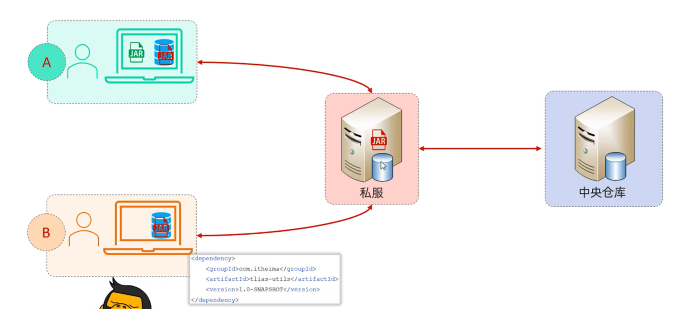 3. 私服 私服是一种特殊的远程仓库,它是架设在局域网内的仓库服务,用来代理位于外部的中央仓库,用于解决团队内部的资源共享与资源同步问题。