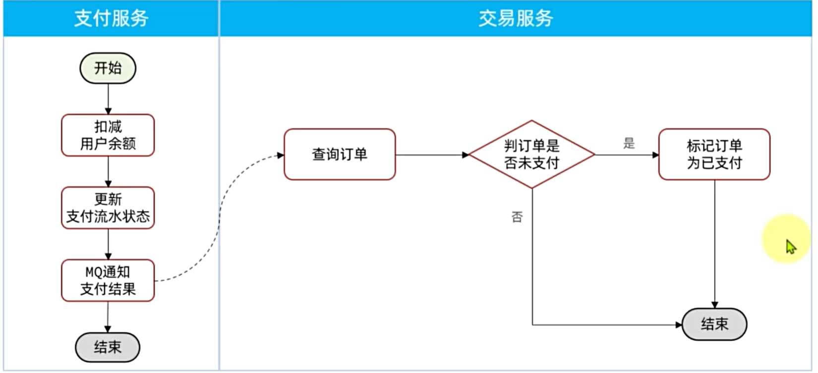 - 首先,支付服务会正在用户支付成功以后利用MQ消息通知交易服务,完成订单状态同步。