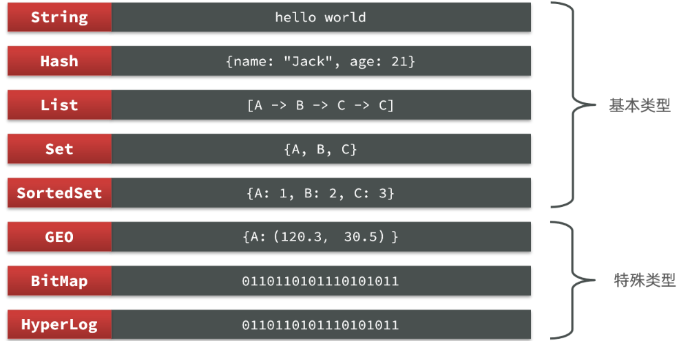 Redis是典型的key-value数据库,key一般是字符串,而value包含很多不同的数据类型