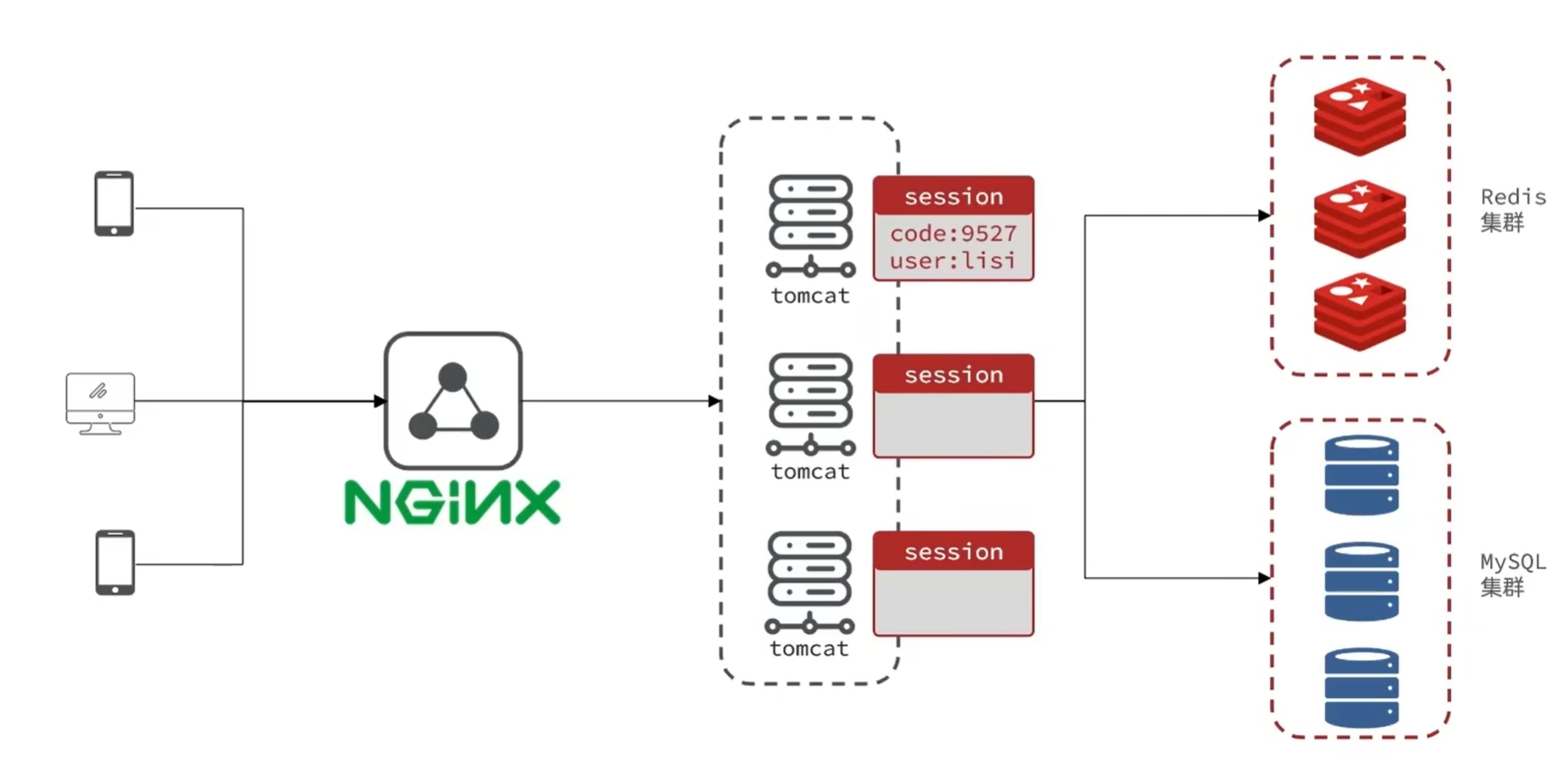 每个tomcat中都有一份属于自己的session,假设用户第一次访问第一台tomcat,并且把自己的信息存放到第一台服务器的session中,但是第二次这个用户访问到了第二台tomcat,那么在第二台服务器上,肯定没有第一台服务器存放的session,所以此时 整个登录拦截功能就会出现问题