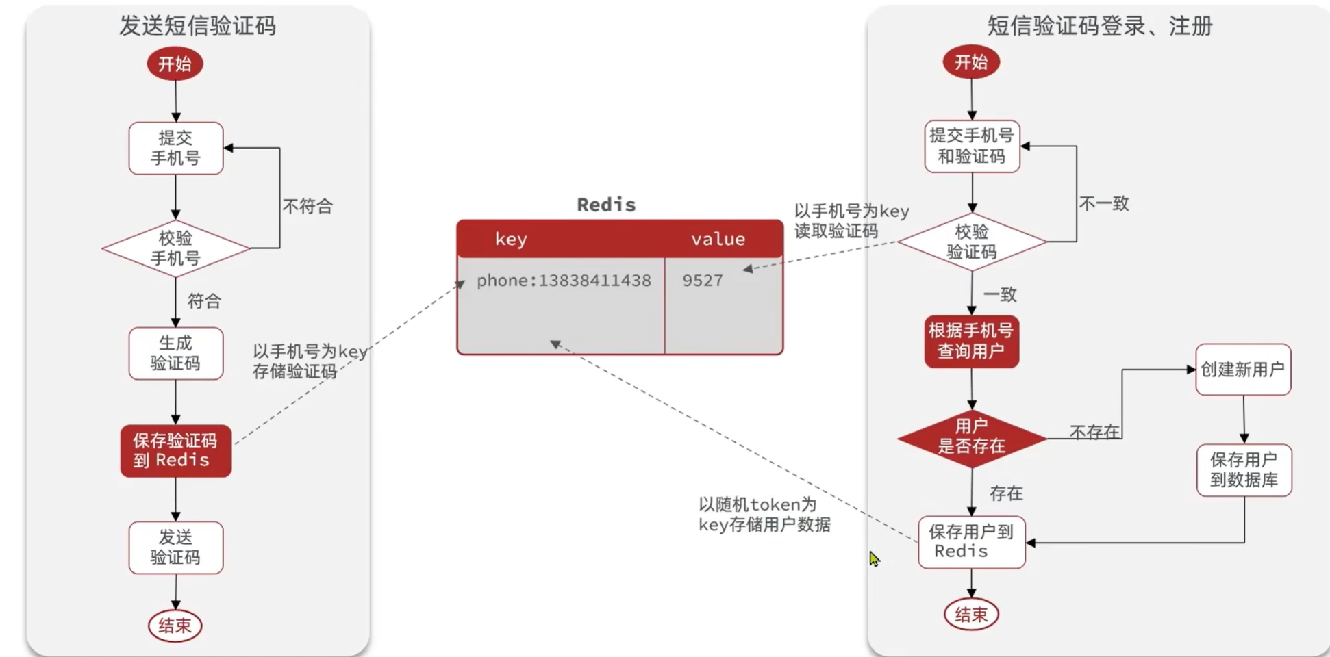 - 发送短信验证码:将验证码保存到Redis里面,而不是session