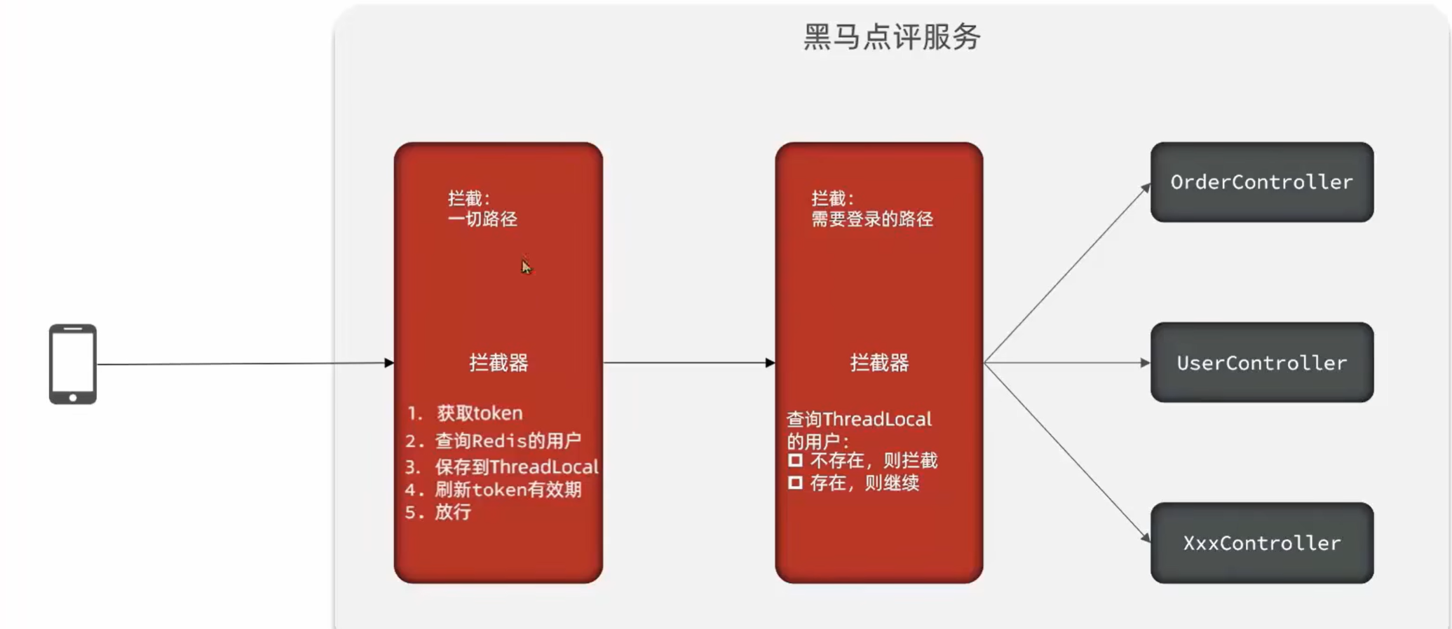 - 第一层拦截器是做全局处理,例如获取 Token,查询 Redis 中的用户信息,刷新 Token 有效期等通用操作。