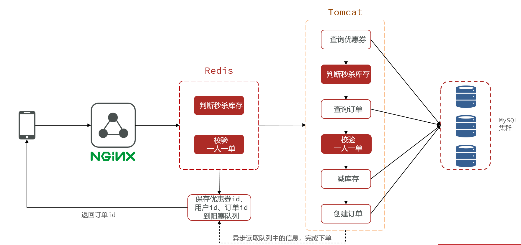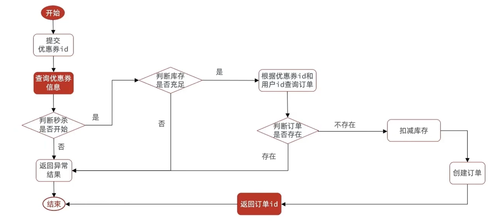 - 一人一单:秒杀业务要求同一个优惠券,一个用户只能下一单