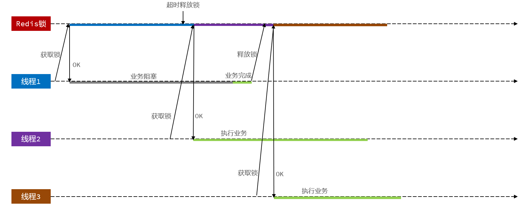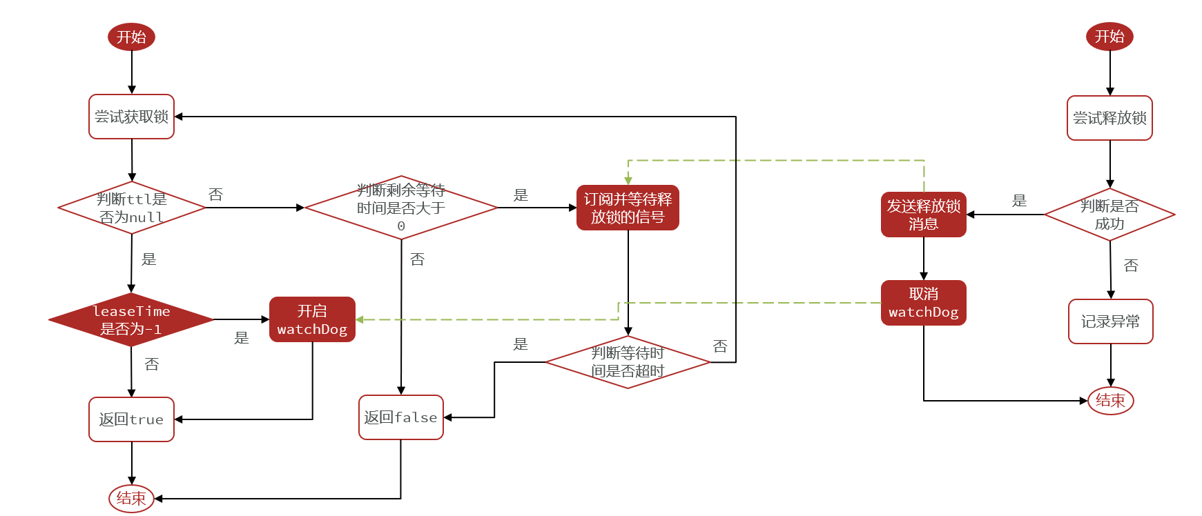 - 如果使用 lock() 加锁(不带超时时间),Redisson 会启动一个后台定时任务,每隔 10 秒自动续期,将锁的过期时间续为 30 秒;