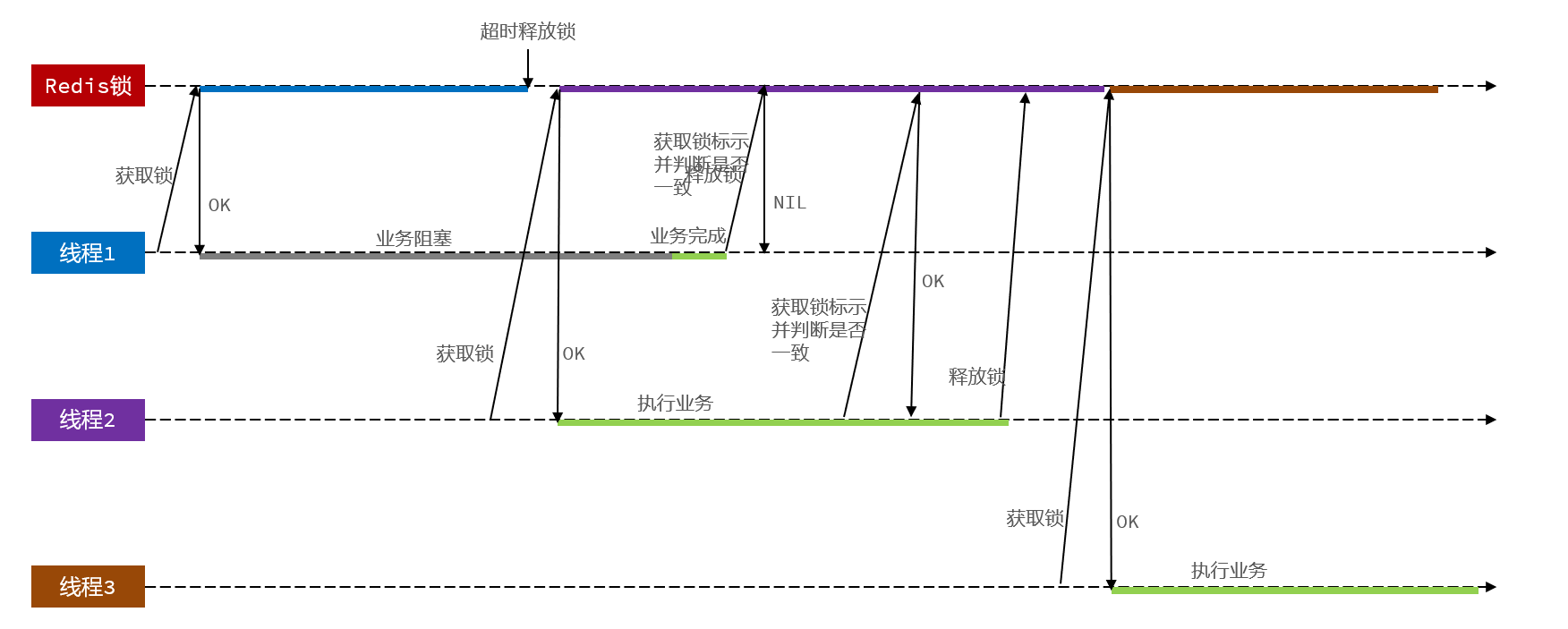 SET key value NX PX命令加锁- key 是锁名,value 是唯一标识(UUID+线程ID)