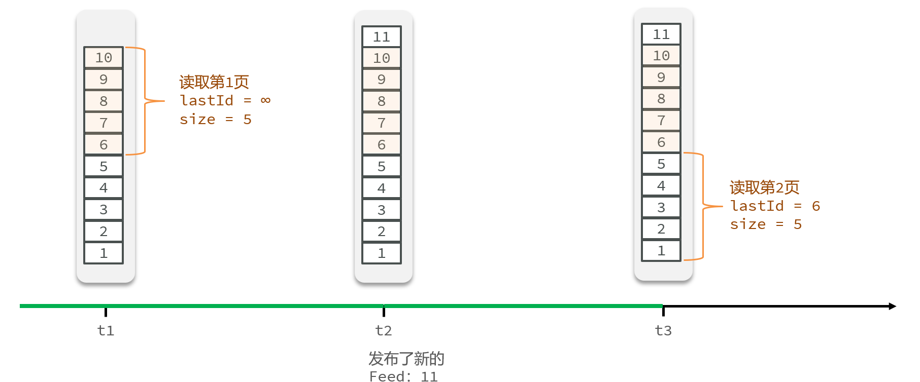 Feed流中的数据会不断更新,所以数据的角标也在变化,因此不能采用传统的分页模式。